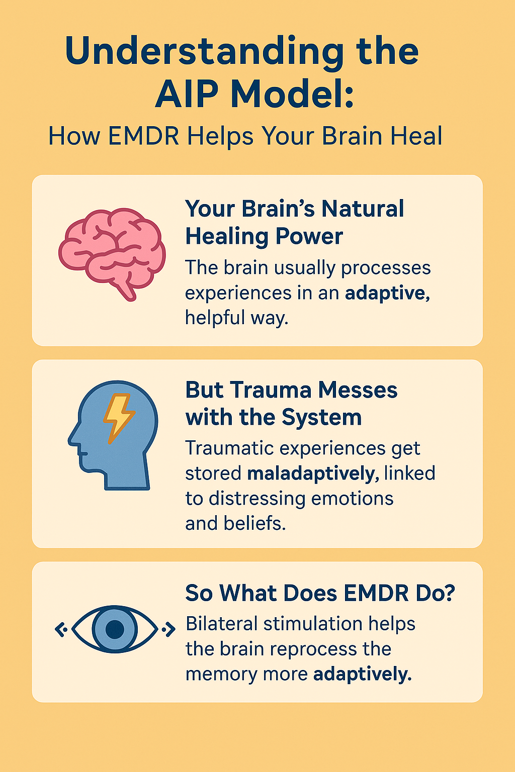 Ever wonder how EMDR actually works? The secret sauce behind EMDR therapy is something called the Adaptive Information Processing (AIP) model—a fancy name for something your brain is actually built to do: heal.